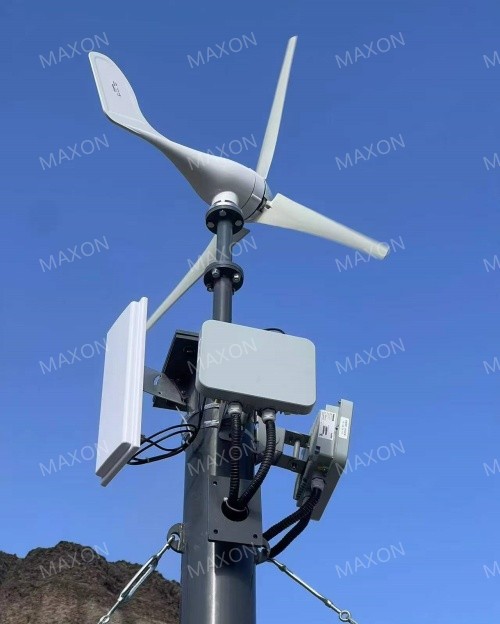 如圖1,4個(gè)監(jiān)控點(diǎn)位分布在河谷兩側(cè),中繼基站位置為原運(yùn)營商基站位置,為當(dāng)前區(qū)域內(nèi)的制點(diǎn),距離最遠(yuǎn)監(jiān)控點(diǎn),距離大概5公里,靠外的兩個(gè)點(diǎn)位夾角25°。中繼基站距離柳樹溝觀測站距離約1km左右。監(jiān)控前端采用風(fēng)光供電方案,點(diǎn)位選擇時(shí),兼顧日照條件良好。