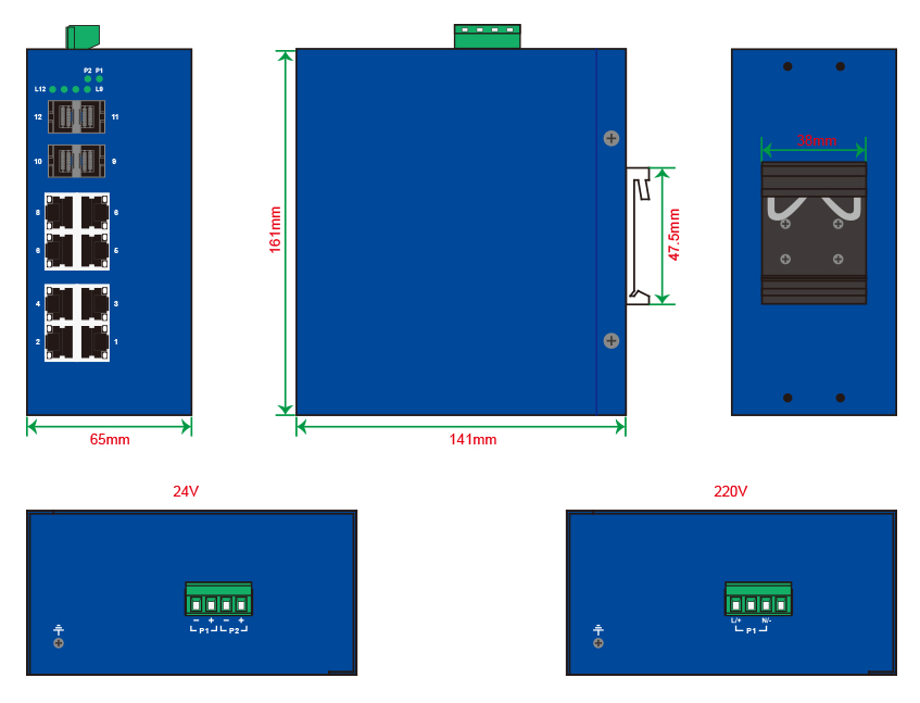 | 安裝方式 | 默認導(dǎo)軌安裝,可選壁掛安裝 |
